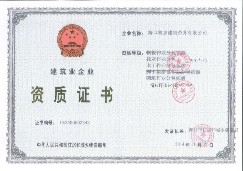 海口樹泉建筑勞務(wù)有限公司成立于2011年,公司位于海口,其前身是一家專業(yè)建筑施工隊(duì),自2004年即開始在海南從事建筑勞務(wù)施工。自成立至今,公司已經(jīng)擁有一支科學(xué)管理、質(zhì)量過硬、能打硬仗,搶工期的專業(yè)隊(duì)伍。能獨(dú)立承擔(dān)大中型工業(yè)與民用建筑 、室內(nèi)外裝修、各類機(jī)電設(shè)備安裝工程。代表工程有海口濱海華庭、三亞時(shí)代海岸T01/02/04/05棟高層、合肥東海花園二期、陵水富力灣B區(qū)高層、三亞金中海(酒店)、瓊海大印經(jīng)典花園、海口環(huán)球海景大酒店(四星級(jí)酒店,在建中)、陵水珍珠大廈(五星酒店)、海口萬達(dá)廣場(chǎng)、美蘭機(jī)場(chǎng)二期。